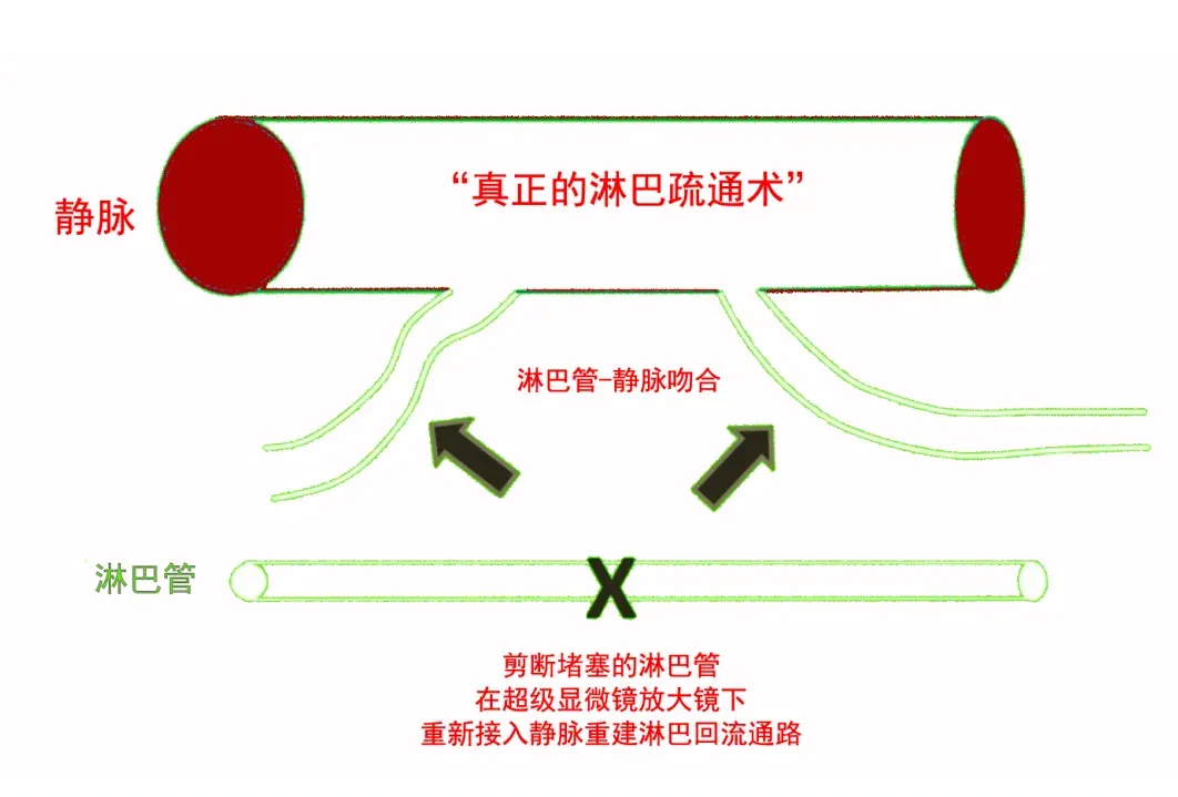 淋巴-静脉吻合术是在高倍的超级显微镜下,把淋巴管与静脉吻合就相当于为堵塞的淋巴液重建了一条“人工渠”,而堵塞的淋巴液借道“静脉”后就畅通无阻,这就让淋巴液实现了循环回流,淋巴液“不堵”了, “肿”也就消失了,同样的原理,脑内淋巴回流压力降低了,将沉积的蛋白通过‘人工渠’回流到静脉系统,就能达到清理‘有害’蛋白的目的,从而就缓解了阿尔茨海默症的症状。