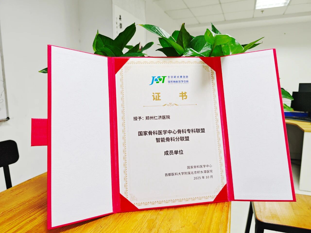 近日,郑州仁济医院喜获佳音——我院正式获得由国家骨科医学中心、北京积水潭医院颁发的“国家骨科医学中心——智能骨科分联盟单位”牌匾。